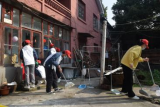 到达干休所后,在干休所工作人员的带领下,志愿者们各自拿着劳动工具去帮爷爷奶奶打扫屋内卫生、擦窗户、拔除杂草和铲土翻土。