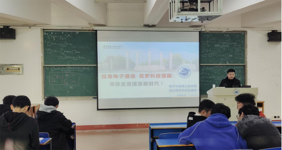 祁雪峰老师宣讲的主题是“投身电子通信 筑梦科技强国”,介绍了南京信息工程大学电子与信息工程学院学科发展、教研平台、实验室建设、科研队伍、人才培养及硕士研究生招生等情况,诚邀我院学生毕业时积极报考南京信息工程大学研究生。