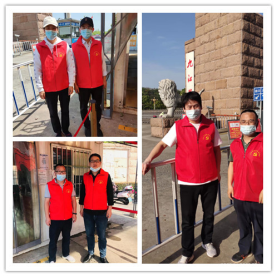 为全力做好新冠疫情防控工作,充分发挥党员的先锋模范作用,按照学校疫情防控的整体部署,4月9日-11日,我院院长邓长寿、党委书记汪傧、副书记张堑、副院长胡日新和杨长春分别带领部分党员同志在学校西大门积极参与学校的值班工作,协助询问排查车辆和出入人员的行程码。