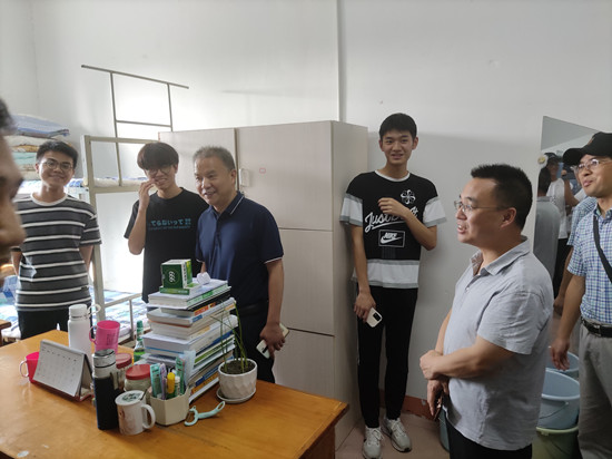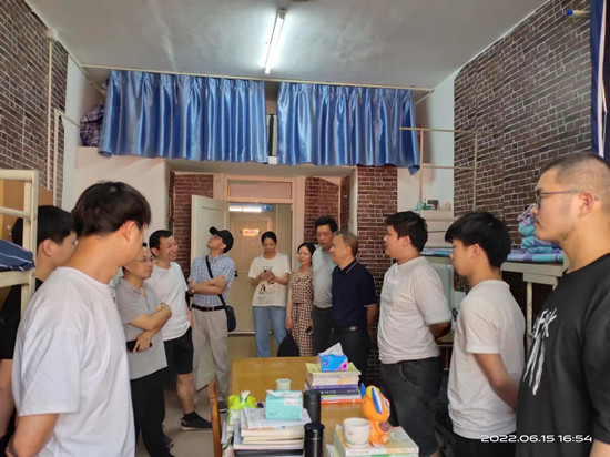 6月15日下午,学院院长邓长寿、党委书记汪傧、副院长胡日新、党委副书记张堑、党委委员毛莉莉、吴华杰及学生科全体辅导员老师深入学生宿舍楼15栋,走访慰问我院学生,与同学们进行了亲切的交流和交谈,并实地察看学生科办公环境、考研场地、防疫物资设置、公共设施、环境卫生和安全用电等情况。