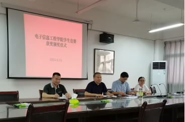 6月15日晚19:00,我院在竞知楼904会议室举行2021-2022学年电子设计竞赛获奖(省级以上)学生颁奖仪式,院长邓长寿、副院长胡日新、实验室负责人、电子竞赛负责老师和获奖学生参加了颁奖仪式。仪式由胡日新副院长主持。