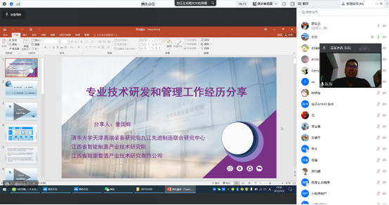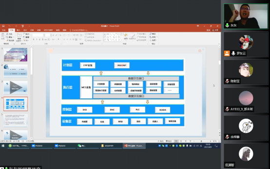 4月9日晚,我院特邀江西智能制造产业技术研究院董国辉部长线上给自动化A1931、A1932和A1933班学生授课。董国辉以《专业技术研发和管理工作经历分享》为题讲授了智能工厂的概念,并详细描述了智能工厂的计划层、执行层、控制层和设备层。自动化教研室教师参加了授课活动。