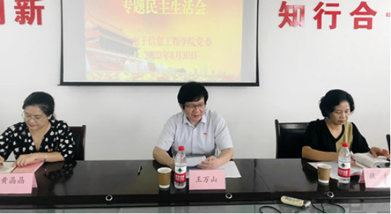 8月30日下午,学院党委召开了学习贯彻习近平新时代中国特色社会主义思想主题教育专题民主生活会,学校党委委员、副校长王万山,主题教育第二督导组魏松、黄晶晶到会指导,民盟盟员、学院副院长冷清明列席会议,学院党委班子成员参加会议,会议由党委书记汪傧主持。
