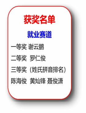 经过激烈角逐,来自人工智能专业A2362班黄靖榕同学摘得成长赛道桂冠,而就业赛道第一名由电子信息工程专业A2111班谢云鹏同学获得。
