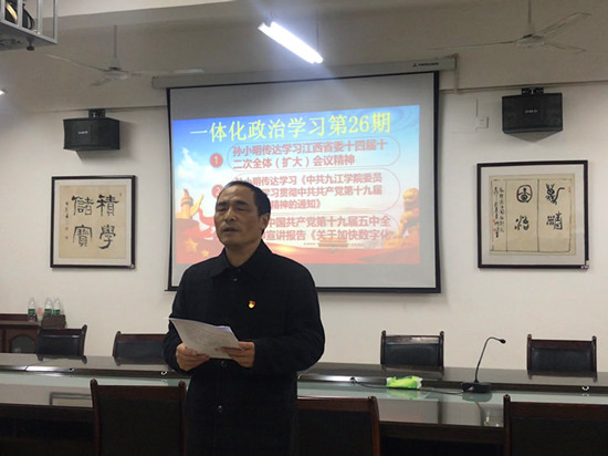 12月2日下午,77779193永利官网集团“一体化”政治学习举行第26期活动,由学院党委副书记张堑作党的十九届五中全会精神宣讲报告,畅谈学习心得。活动由党委书记孙小明主持,全院教职工及部分学生党员参加了活动。