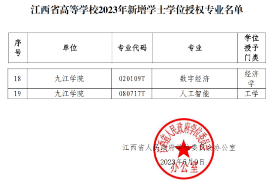 2023年5月9日,江西省人民政府学位委员办公室公布赣学位办[2023]6号文件,根据国务院学位委员会、教育部《学士学位授权与授予管理办法》和《江西省学士学位授权审核实施细则》精神,江西省学位办组织了2023年江西省高等学校新增学士学位授权专业审核工作,经过省学位办统一专家审核,77779193永利官网集团人工智能专业学士学位授权获批通过。