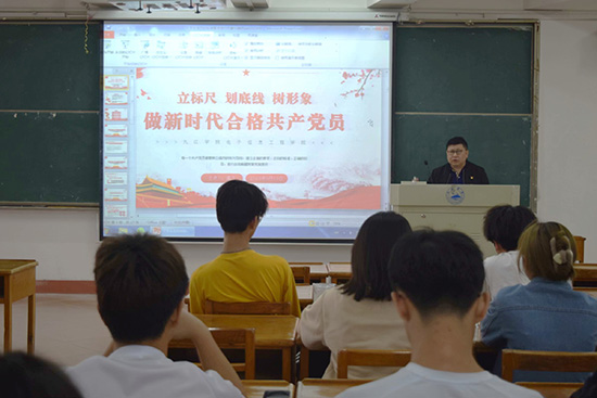 4月19日14:30,党委书记汪傧、学生党支部书记高飞在竞知楼阶七教室为入党积极分子开展专题辅导活动。活动开始,学生党支部书记高飞阐述了举办入党积极分子培训班的意义,希望广大学员做到思想重视、勤于思考,认真学习相关材料,认真听取辅导报告,珍惜此次培训机会争取最大收获,并对同学们的发展和成长寄予深切希望。