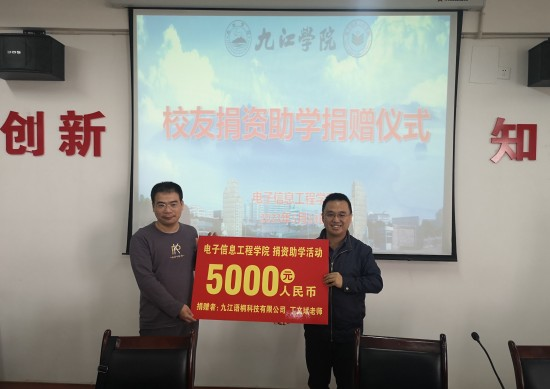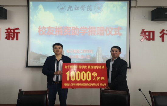 何金石校友捐赠50000元,分5年用于资助我院品学兼优的贫困生,此次捐赠10000元。他还表示,作为曾经的贫困学生,在母校的帮助他才能顺利完成学业,饮水思源,只要母校需要、自己有能力,他将让爱心助学行动一直持续下去,激励和帮助更多的学弟学妹成长成才。