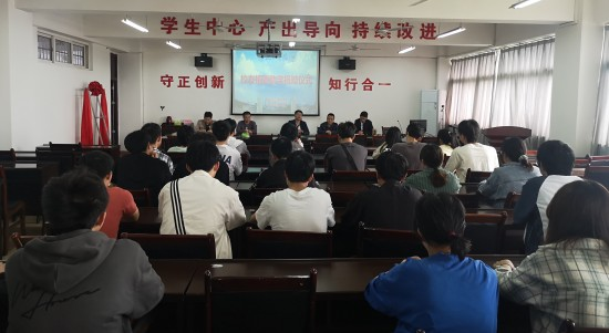 随后,举行了座谈会,何金石校友和丁文斌老师分别就大学生就业和创业、在校学好专业课与同学们进行了交流,并回答了学生的提问。