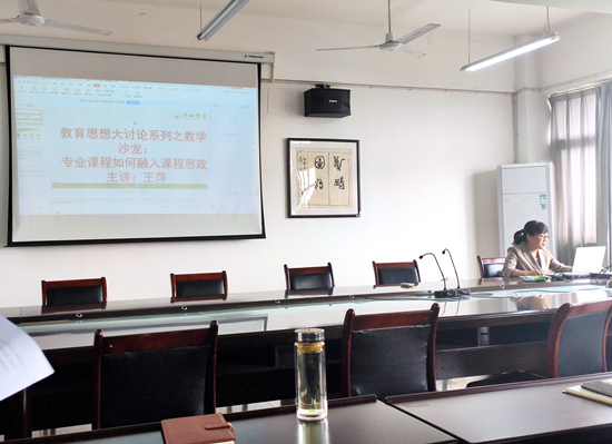 开展教育思想大讨论,是学校服务人才强国战略的迫切需要,是学校推进教育综合改革的迫切需要,是对学校的办学理念和办学思想的深刻认识。为进一步加强我院教师队伍建设,大力提升我院课堂教学水平,2022年5月18日下午14:15,在竞知楼904会议室,我院组织“专业课程如何融入课程思政”的教学沙龙,由2020年度校级课程思政优秀教师获得者,自动化教研室的王萍老师主讲。