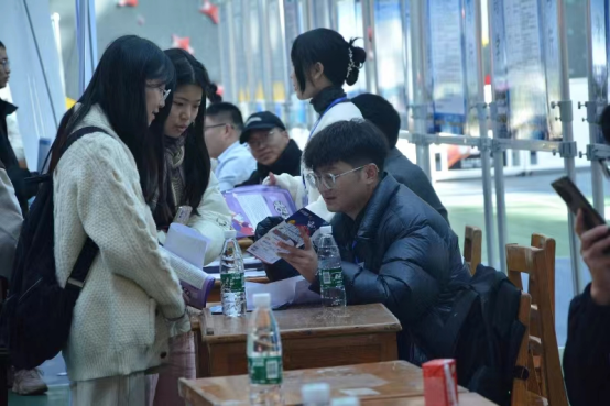 在学院的广泛宣传动员下,两院毕业生系数到场,招聘现场,人头攒动,气氛热烈。由于专业方向对口,毕业生与用人单位积极交流,很多展位前学生扎堆、积极咨询,招聘人员悉心讲解、耐心回答。