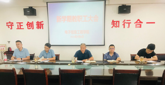 9月6日下午,我院在竞知楼904会议室召开新学期工作会议。院党委书记汪傧、院长邓长寿、副院长胡日新、副院长冷清明、院党委副书记张堑及全体教职工参加了会议。会议由张堑主持。