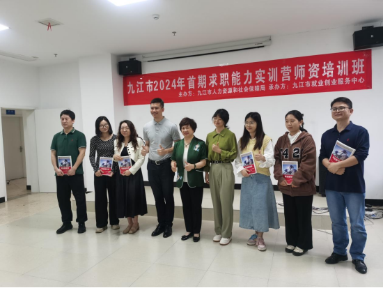 九江市2024年首期求职能力实训营师资培训班于4月23日~4月30日举办。此次师资培训班为期8天,邀请了胡珍剑等三位国家级导师授课,30名来自省内多地高校、企业、就创中心的学员参加了培训。我院辅导员朱亚军、邱敏及经管学院4位老师参加了此次培训并顺利结业。