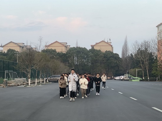 早晨6点50,在清点出勤人数,完成热身准备后,各班同学迎着清晨第一缕阳光,排着整齐的队伍,井然有序地在北区体育训练中心前开始了晨跑。同学们精神抖擞、热情高涨,步伐声、口号声,为春季清晨的美丽校园增添了新的活力和色彩,展现了我院学子积极向上,不畏严寒的气概与当代大学生的青春风采。