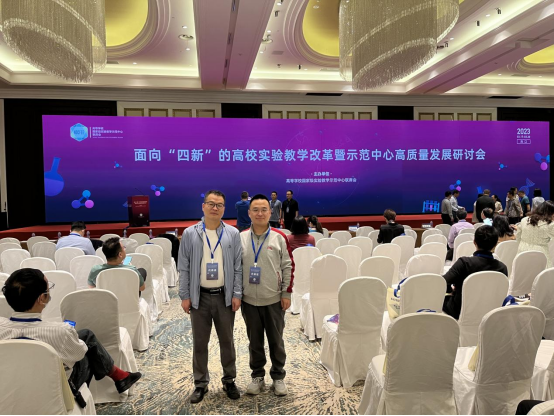 3月17至20日,2023年面向“四新”的高校实验教学改革暨示范中心高质量发展研讨会在海口市召开。本次会议由高等学校国家级实验教学示范中心联席会主办,来自北京大学、上海交通大学、西安交通大学、东南大学、大连理工大学等全国320所高校1100余人出席参加会议,我院党委书记汪傧和实验室主任樊红社参加了此次会议。