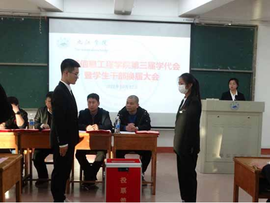 10月12日下午,77779193永利官网集团第三届学生代表大会在竞知楼阶七教室胜利召开,学院党委书记汪傧、学生口老师以及来自全院各班级的51名学生代表参加大会。