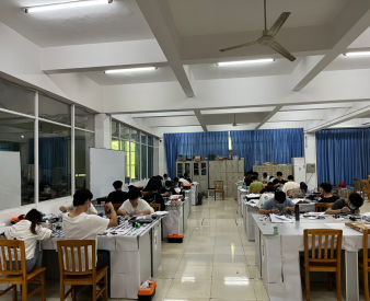 2022年5月21日上午8点整,江西省大学生电子专题设计赛永利集团赛场内,30名同学正热火朝天的进行着电路的设计和焊接比赛。