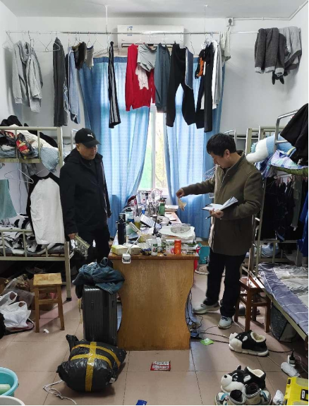 此次检查,既是一次消防月的工作安排,也是每月的一次例行检查。主要对宿舍违章用电、防火防盗、管制刀具、消防设施以及宿舍内务卫生进行检查,重点排除安全隐患,发现问题及时督促整改。