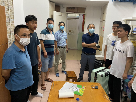 深入寝室后,院领导与新生亲切交谈,鼓励同学们尽快熟悉环境,适应集体生活,尽快投入新阶段、新生活、新起点,希望同学们团结互助,努力学习,大学四年收获满满。