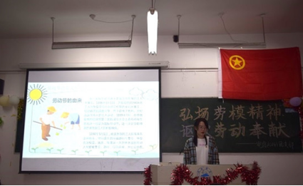 五一国际劳动节来临之际,为弘扬劳模精神,鼓励大学生积极参与劳动,我院展开“弘扬劳模精神,讴歌劳动奉献”团日活动,由各班团支书主持。