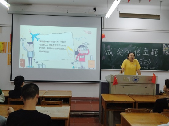 各班团支书通过PPT引导同学们树立诚信感恩、自信自强的意识,不辜负国家资助政策帮助家庭经济困难同学顺利完成学业;号召同学们争做“青春励志”的先锋和“诚信感恩”的楷模,增强“诚信成就梦想与未来”的观念与意识。