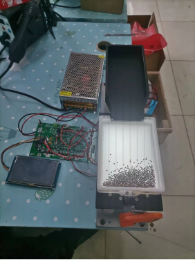 本产品是本校校友企业提出需求,电子信息产业学院牵头,在我院导师工作室,由电信教研室丁文斌老师携学生作为毕业设计作品,和企业工程师合作完成的设计。企业提供了配套的机械图纸和组件,我院学生进行了电路板设计和软件设计。相对市面上普通的振动盘,该设计采用了先进的音圈电机,利用正弦波驱动的方式,实现了柔性震动下,物料的快速定向排列。由于采用了较为先进的抗干扰措施,该振动盘能够实现强干扰工业环境中,任意热插拔下的自动恢复功能,主要指标领先同类产品,较好地实现了企业需求。