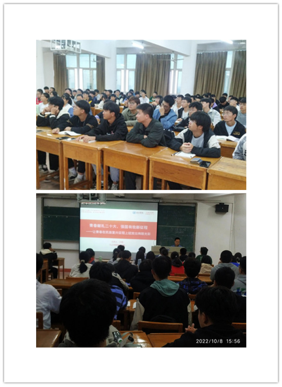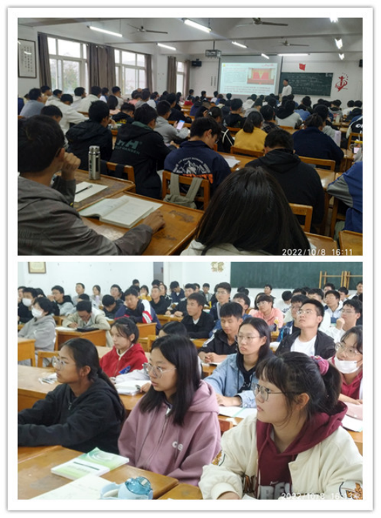 为引领青年学生用党的奋斗历程和伟大成就鼓舞斗志,明确方向,凝聚力量,勇担使命,厚植爱国情怀。10月8日,学院党委书记汪傧带头为我院A2231班、A2232班新生讲授了以“青春献礼二十大强国有我新征程——让青春在民族复兴征程上绽放出绚丽光彩”为主题的入学“思政第一课”。