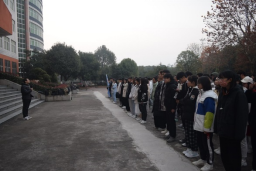 12月7日晨跑前,我院在电子信息实验楼前对2021级军训先进个人进行表彰,活动由2021级辅导员盛健老师主持。