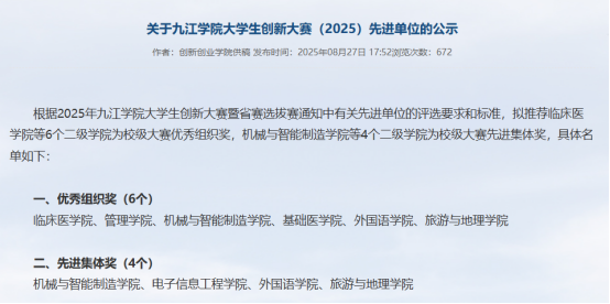 近日,永利集团2025年大学生创新大赛先进单位评选结果公布,77779193永利官网集团以学校积分排名第二的成绩,斩获“校级先进集体奖”,我院已连续多年在该赛事中荣获殊荣,尽显学院创新创业教育底蕴与创新人才培养的持续进步。