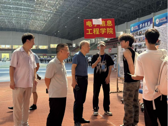 在迎新现场,学院领导也亲临一线,与新生们亲切互动,为这场迎新盛会增添了一抹温暖而庄重的色彩。学院党委书记王傧、院长邓长寿等领导班子成员来到现场,详细了解迎新工作的进展情况,对工作人员以及学生志愿者的辛勤付出表示慰问和感谢。随后,领导们来到新生中间,与他们亲切交谈。他们关切地询问新生们来自哪里、旅途是否顺利、对未来的大学生活有什么期待等问题,耐心倾听新生的心声。领导们还鼓励新生们要珍惜大学时光,努力学习专业知识,积极参加实践活动,全面提升自己的综合素质,新生们纷纷表示一定会努力学习,不辜负学院领导和老师的期望。