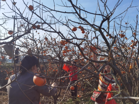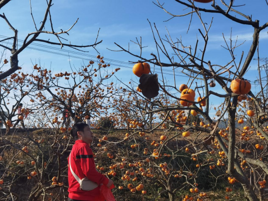 胡桥村的千亩柿林是此次研学活动的“欢乐终点站”。深秋时节,金黄的柿子挂满枝头,微风拂过,果香四溢。大家手提采摘篮,迅速投入到采摘乐趣中 —— 有的踮起脚尖采摘高处的果实,有的相互配合传递柿子,有的则忙着挑选品相最佳的果实,柿林间回荡着阵阵欢声笑语。