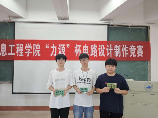 经测评,在电路制作赛,A2314温智豪获一等奖;A2313张玉峰、A2313陈文钦获二等奖;A2313张美玲、邹照、冯鑫获三等奖。赛前24小时,参赛选手利用经验或设计软件,完成设计图。5月20日,所有选手在电子信息实验楼402实验室,集中进行焊接调试。