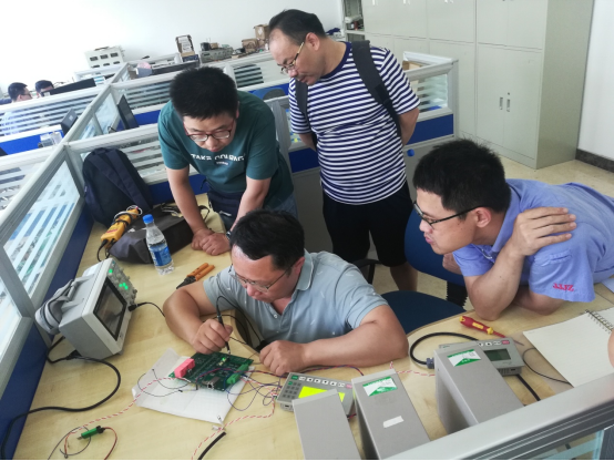 双方认真细致地研讨了项目调试方案,副总工曾广俊还热情细致地指导并帮助测试了控制板的信号。赛晶科技为我院项目组还在其研发部安排了专用工位,便于我院教师入企定点工作。