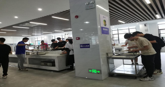 座谈会结束后,王鹏经理带领大家到公司食堂品尝了美味的员工餐,饭后又带领大家到公司南区足球场和体育馆进行了参观体验。