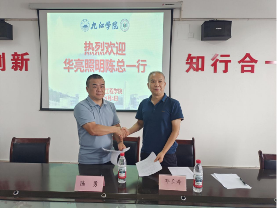 9月4日上午,华亮照明科技有限公司总经理陈勇率队来访我院,就推进产学研深度融合进行洽谈交流。我院院长邓长寿、副院长罗东云、副书记朱亚军及教师代表舒彤、刘理等一同在竞知楼904会议室热情接待了来宾。