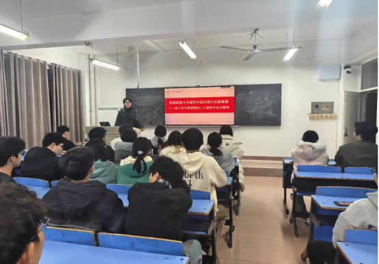 为深入学习宣传贯彻党的二十届四中全会精神,切实把青年学生的思想和行动统一到全会决策部署上来,充分发挥大学生骨干的示范引领作用,近日,我院“芯”青年宣讲团成员肖天宇面向学院团委组织部全体成员开展专题宣讲,推动全会精神入脑入心、见行见效。