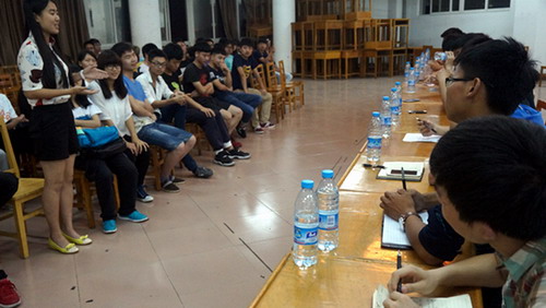 本次座谈会改变大骨班传统的授课方式,分为现任主要学生干部谈工作经验和分组讨论两个部分。首先,团委、学生会主席团成员及各部门部长结合分管的工作与大骨班学员分享了他们的工作经验、感想并对大骨班学员们提出期望。随后,现任学生干部平均分到3个大骨班中去,与学员一起围绕“学生干部工作能力的提高”、“担任学生干部的前途”进行了深入的交流和讨论。