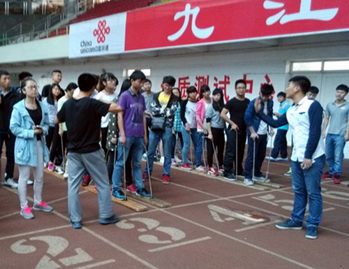 在接下来的“颠鼓击球”项目中,为让学员们能更好的发挥,赛前由3班班主任胡玉勤给学员做了项目介绍并指导他们练习,如何让球稳稳落在鼓上,如何多颠球。在随后的三分钟计时赛里,学员们都绷紧绳子,让球稳稳掉在鼓上,又齐心协力颠球,最终3班颠了130个获得该项目第一名,1班颠了124个获得第二名,2班颠了110个获得第三名。