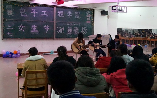 3月9日晚,学院在竟知楼九楼阶梯教举办了2015年女生节文艺表演活动,各班级女生及各部门代表纷纷出席了本场晚会。