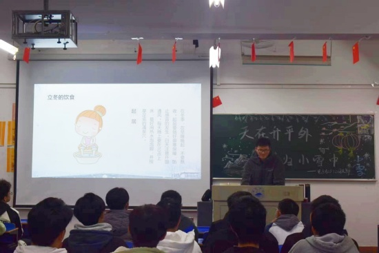 为让我院学生更好的了解“小雪”节气的相关习俗和知识,传承和弘扬中华优秀传统文化。11月30日晚,我院组织各班级在竞知楼开展了“天在升平外,春归小雪中”主题班会。