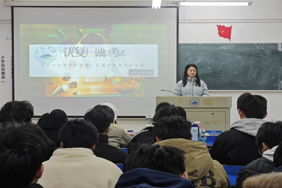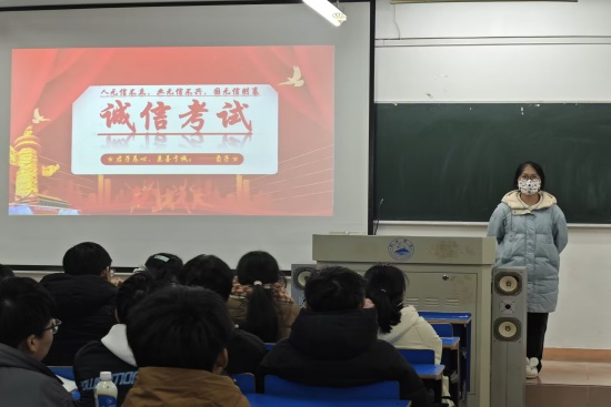 期末考试临近,为增强同学们诚信应考意识,营造公平、公正、诚信的考试氛围。我院于12月21日晚在竞知楼各班教室开展诚信考试主题班会。