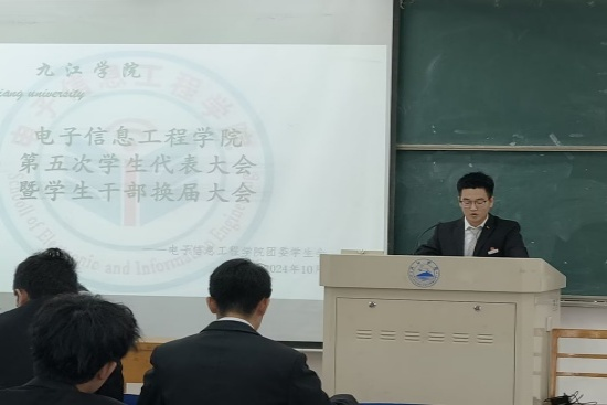 10月16日下午,我院第五次学生代表大会暨学生干部换届大会在竞知楼阶七教室隆重召开。学院党委副书记张堑、团委书记高飞、学生科科长朱亚军、学生科副科长陈美玲、辅导员徐锋、盛健老师及50余名学生代表参加本次大会。