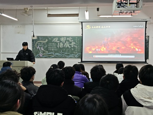 活动伊始,团支书满怀激情地阐述了本次活动的深远意义,着重指出优秀影视作品在青年成长道路上的独特价值。紧接着,大屏幕上缓缓亮起,《哪吒之魔童降世》这部扣人心弦的动画电影映入眼帘。影片中,哪吒身为魔丸转世,面对世人的偏见与误解,却从未放弃自我,他秉持着“我命由我不由天”的坚定信念,与命运抗争,历经磨难,最终实现了从叛逆孩童到英雄少年的华丽蜕变。哪吒的传奇故事深深触动了在场每一位同学的心弦,激发了大家对成长历程、责任担当以及纯真友谊等深刻主题的无限遐想。