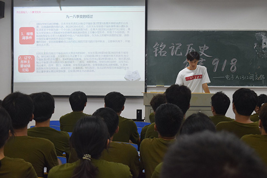 各班团支书首先通过PPT为同学们详细讲解“九一八事变”的经过和对后世的影响,又以观看红色影片、分享红色故事、交流感想、重温入团誓词等方式,引导同学们铭记历史,缅怀先烈,坚定同学们勿忘国耻,砥砺奋进为全面推进中华民族伟大复兴贡献青春力量的决心!