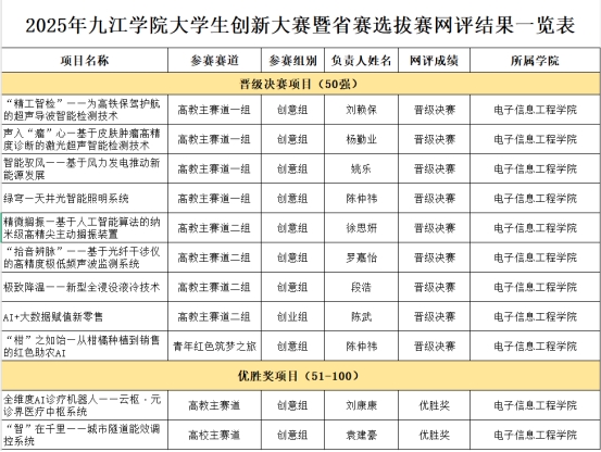 在本届大赛中,学院高度重视、精心组织,从众多创新项目中遴选出12个优质项目推荐参赛。经过激烈角逐,我院学子展现出卓越的创新能力和专业素养,最终11个项目荣获校级奖项,获奖率高达91.7%。其中《“精工智检”——为高铁保驾护航的超声导波智能检测技术》等9个项目凭借其创新性和实用性脱颖而出,成功入围校50强并晋级学校决赛。