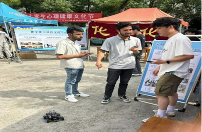 值得一提的是,我们学院此次科技文化节的成果展示还吸引了几位外国留学生前来围观,他们对我们学院制作的智能小车表现出浓厚的兴趣,在参观过程中双方进行了简单的交流与探讨,对我们学院所展示的成果赞叹不已。