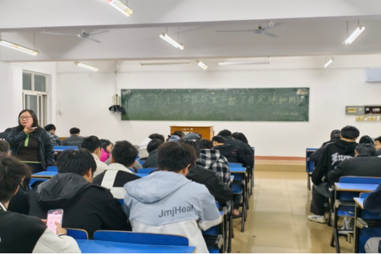 班会还进一步明确了教室节能的责任分工:课堂教学期间,任课教师为第一责任人;自习时段,由学院安排专人巡查管理;教室借用期间,则由借用人负责设备关闭。同时,每位同学都是节能行动的重要参与者,应主动监督、自觉践行,共同维护绿色学习环境。