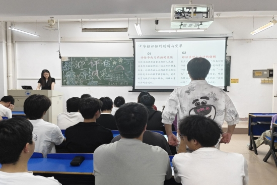 随后,团支书围绕本科教育教学审核评估的核心内容展开详细讲解,重点介绍了评估的实施流程、主要方式及评估内容。讲解紧密结合学校实际,深入浅出地阐述评估对学校发展与学生成长的重要作用,让同学们对评估工作有了更加清晰的认知。针对我院学生的专业特色与学习特点,团支书着重强调大家在评估中的责任与态度,鼓励同学们从遵守课堂纪律、端正学习态度、积极参与校园活动等点滴做起,以良好风貌助力评估。同学们一致表示,将以此次团课为契机,把评估要求融入日常学习生活,做到以评促学、以评促改,为学校高质量通过教育教学审核评估贡献自己的青春力量。