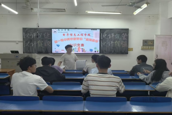 为积极响应2025年新一轮本科审核评估工作,营造“人人了解评估、人人关心评估、人人参与评估”的良好氛围,4月15日晚,我院在竞知楼915教室成功举办了新一轮本科审核评估“应知应会”知识竞赛活动。此次活动面向学院全体学生,参赛代表涵盖学院电子信息工程、自动化、人工智能专业,赛前学院通过多种渠道宣传动员,激发同学们的参与热情;同时,还为参赛学生提供了相关学习资料,帮助大家更好地备赛,吸引了学生踊跃参与,最终9位同学入围参加决赛。