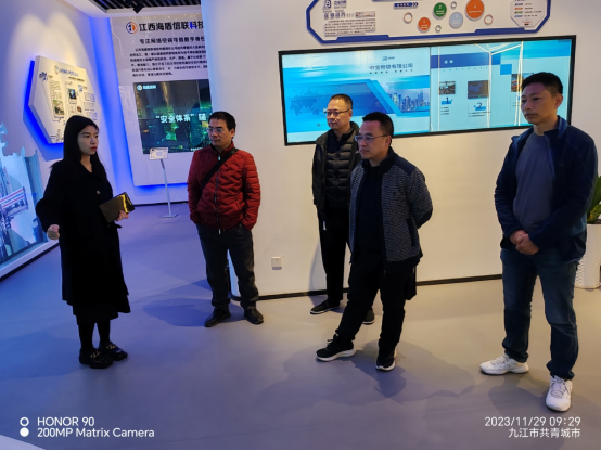 汪傧一行首先参观了共青城数字经济产业园展厅,随后双方在产业园会议室进行会谈。王应想主任全面介绍了产业园的数字驱动经济发展模式,其创新务实的工作思路让我院人员受益匪浅。